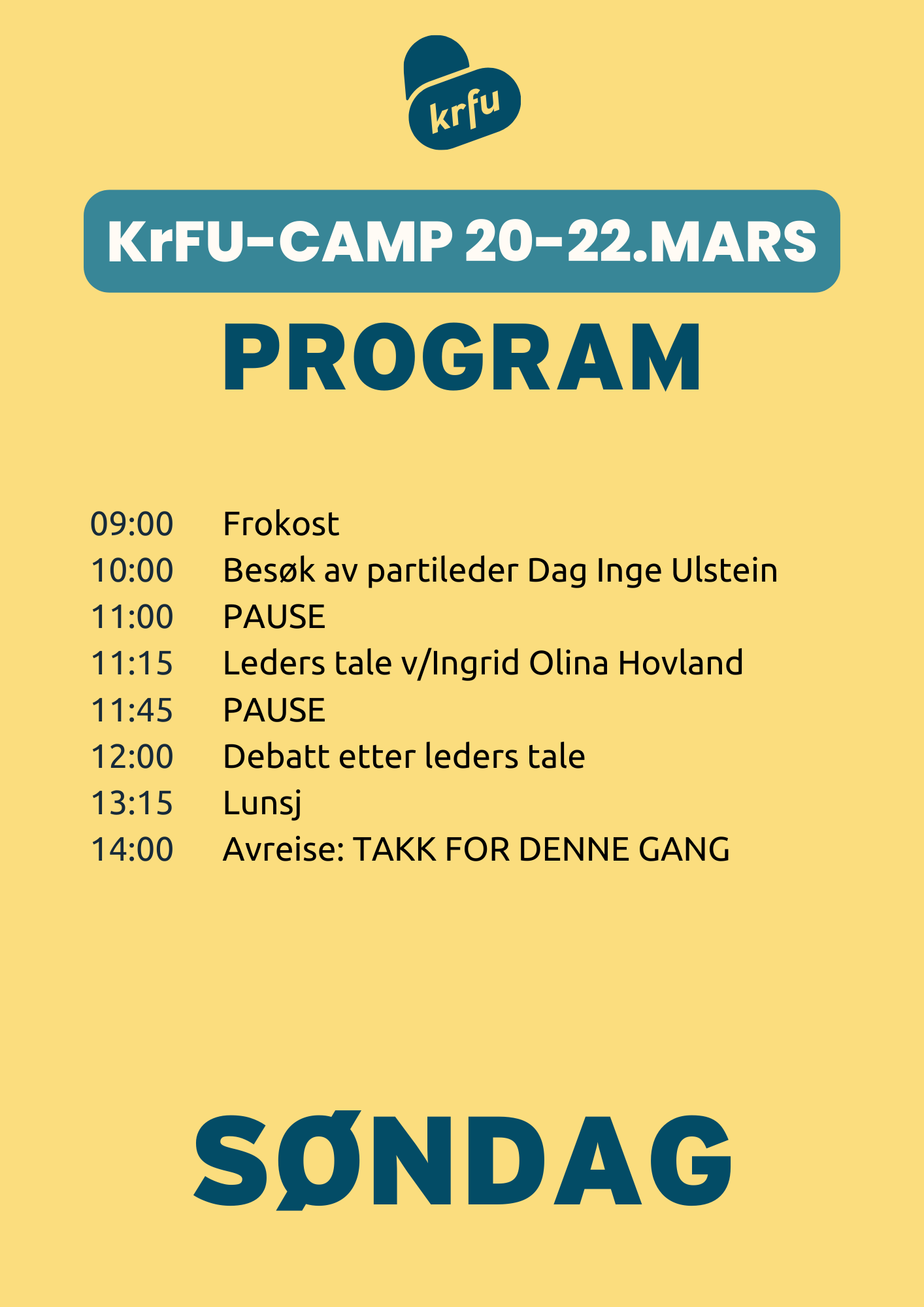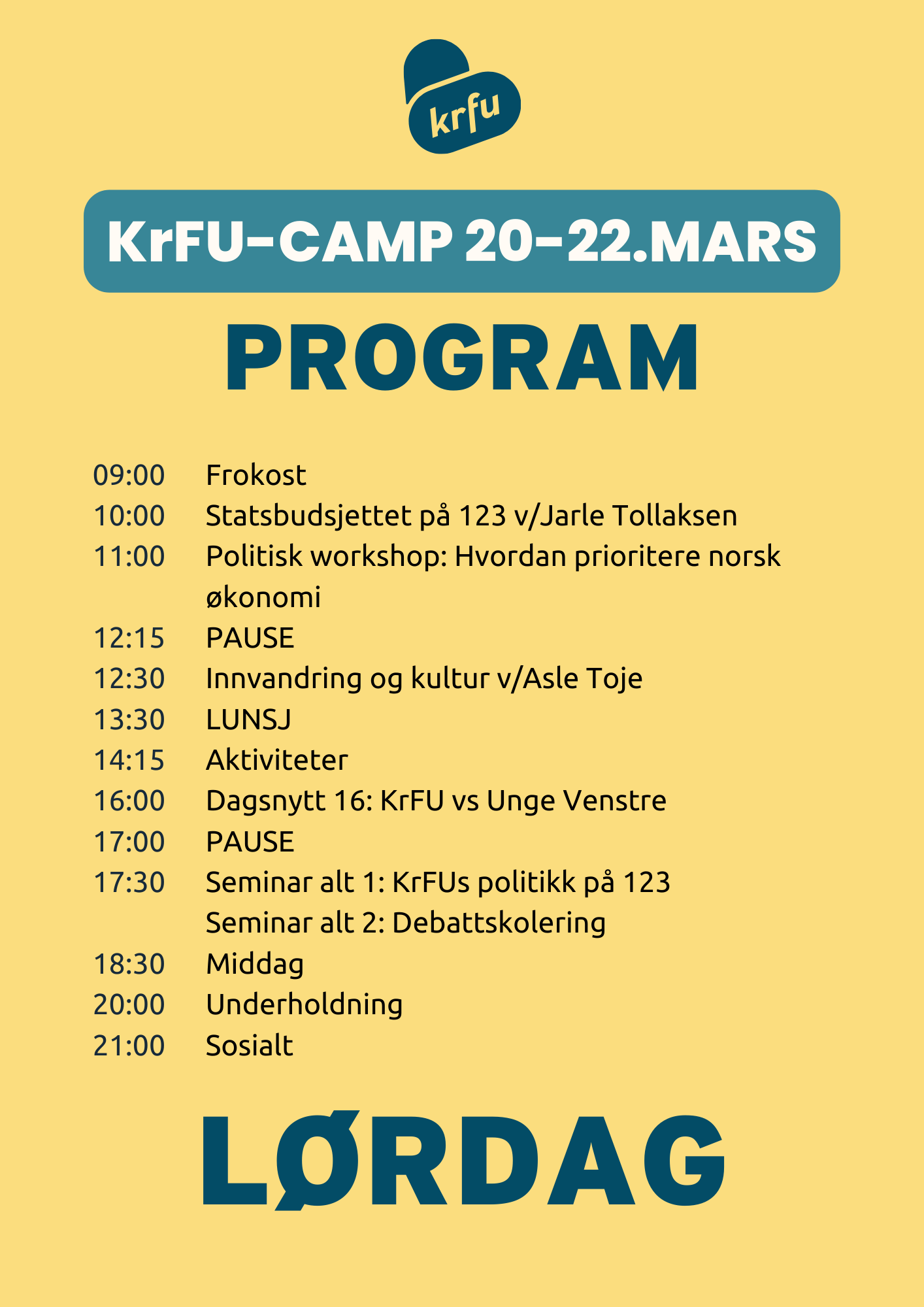 Ta kontakt med generalsekretær Anine Lie på ali@krf.no om du har spørsmål. Vi gleder oss til innholdsrik helg sammen!